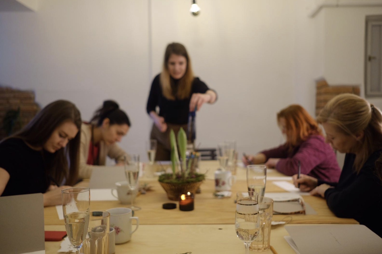 Sejdeme se v malé skupince 6-8 žen. V útulným prostoru fotoateliéru Strojírna.